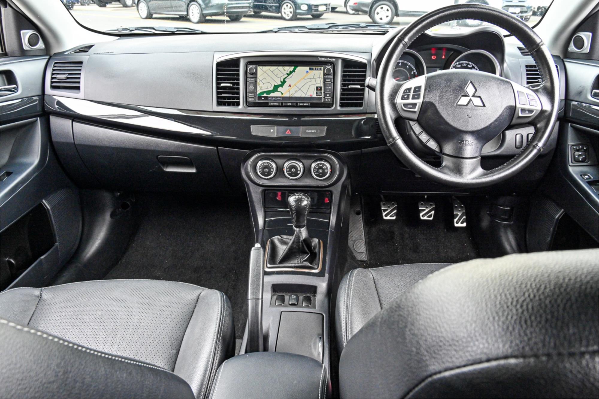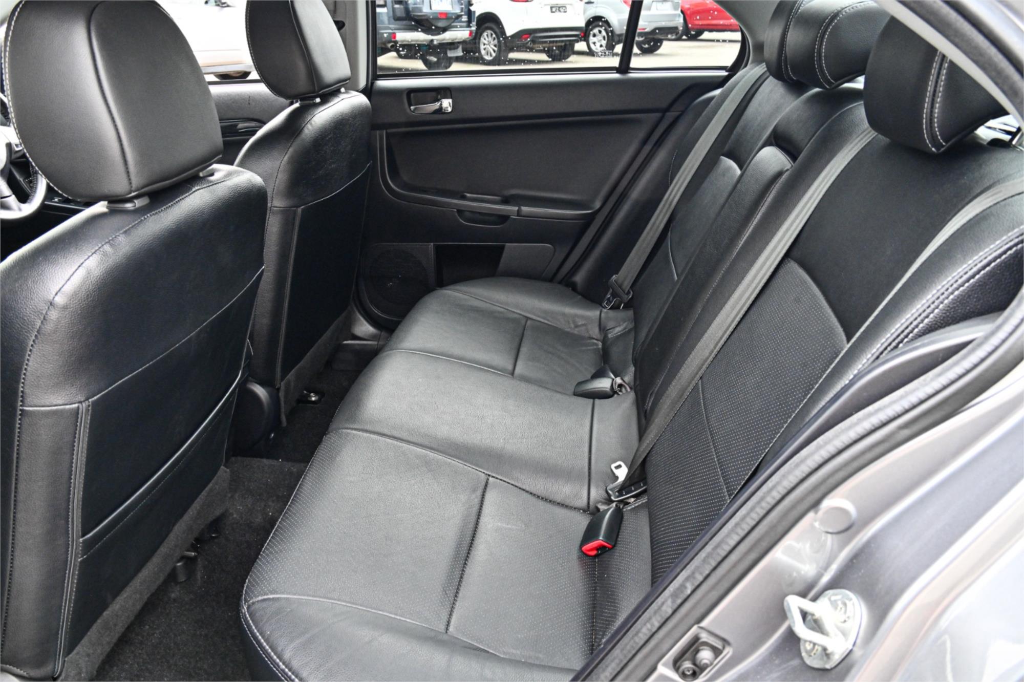 Safety is a top priority with ABS, airbags, traction control, and rear parking sensors. The sleek design of the Lancer is complemented by 18" alloy wheels, chrome accents, and a rear spoiler.